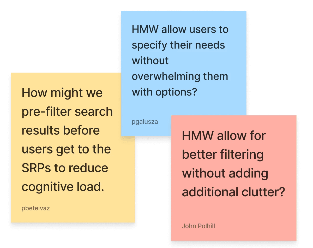 I led a HMW workshop, presenting my research insights and having the team reframe the problem statement.