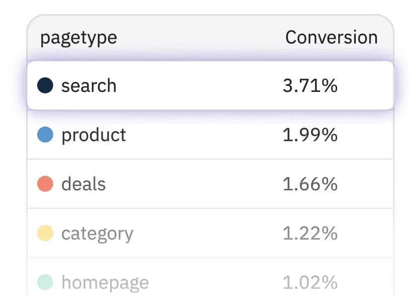 Search pages have the highest % conversion on G2 AI Chat, signaling that people are willing to turn to AI for better answers.