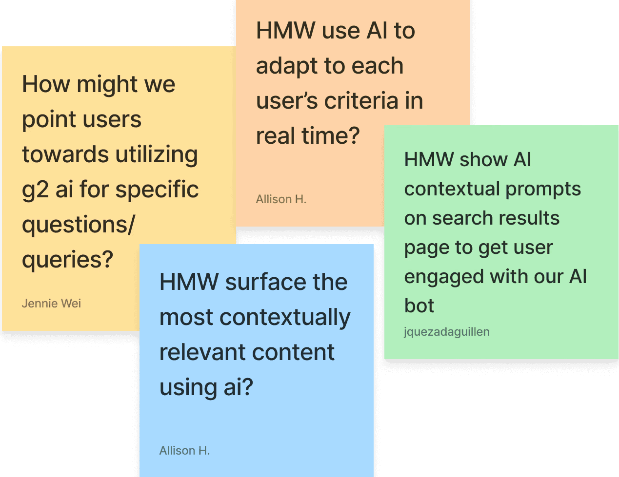 Brainstorming with engineers surfaced new possibilities (and limitations) of integrating G2 AI for a smarter search.