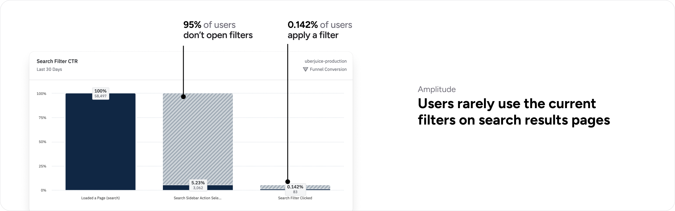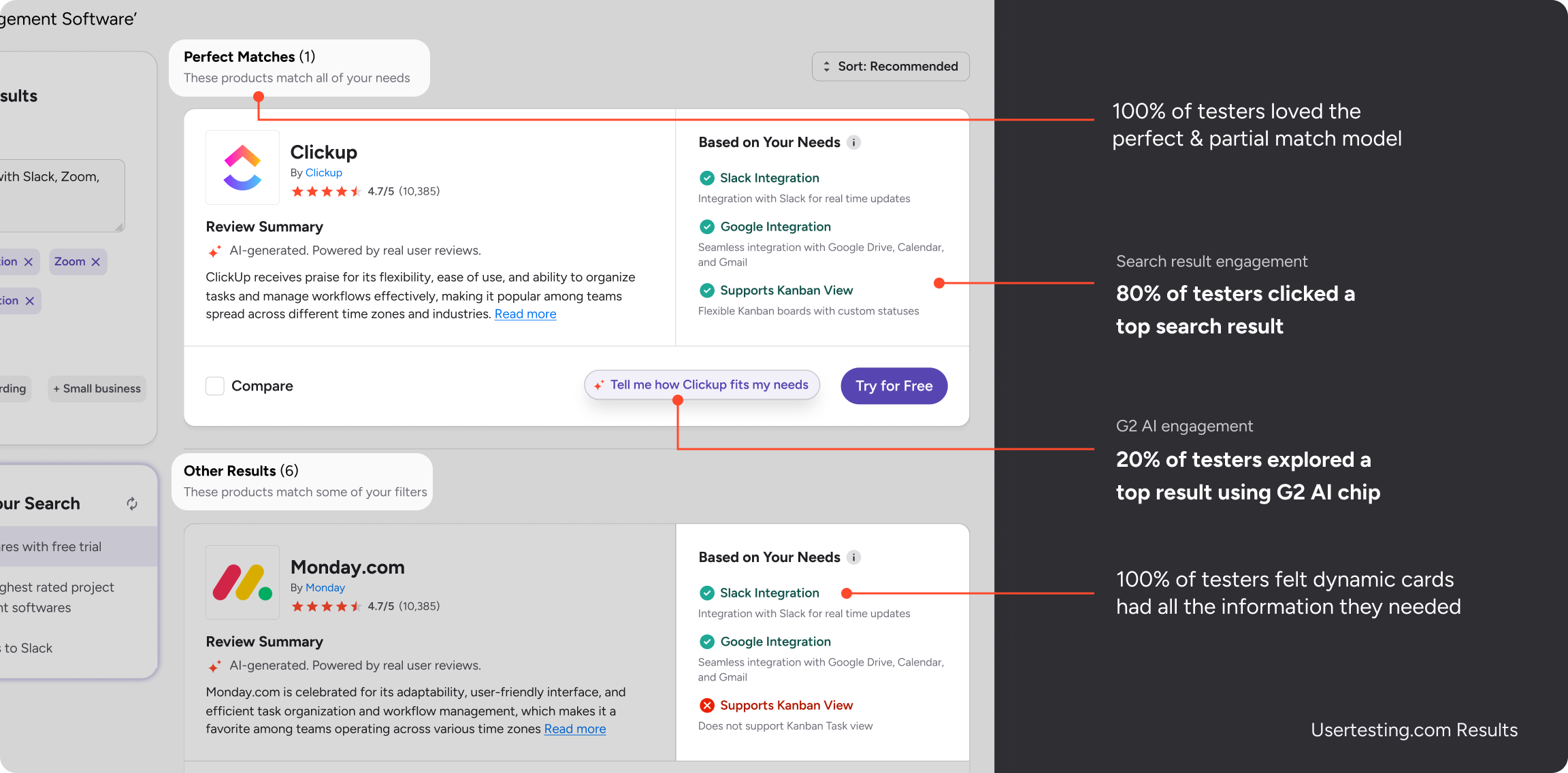 To understand the software buying process from the buyer’s perspective, I analyzed site events in Amplitude, interviewed G2’s buyer team PMs, and ran unmoderated usability tests of the current search with real software buyers.