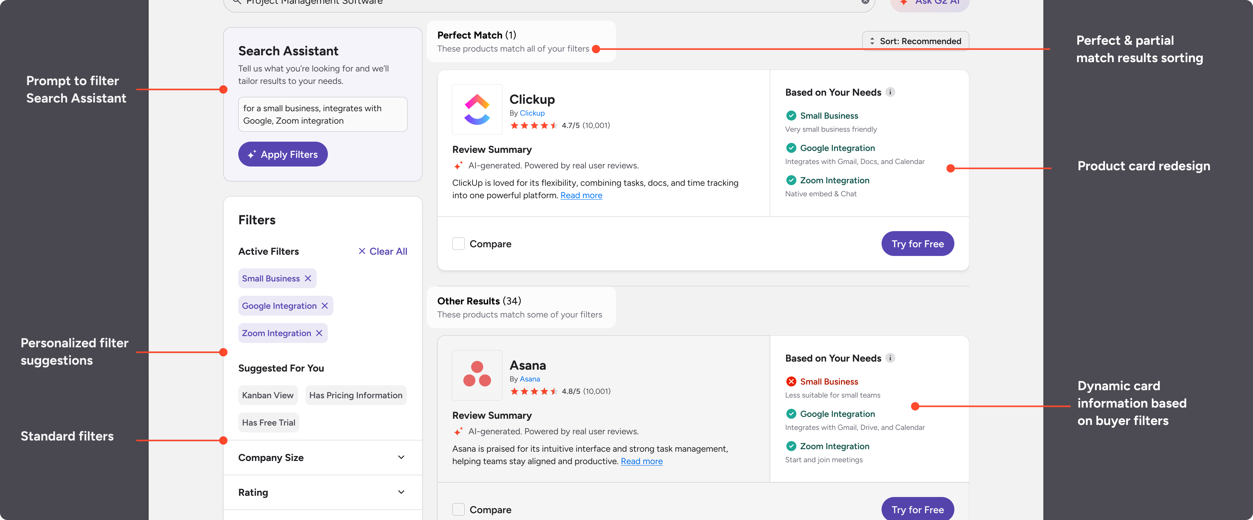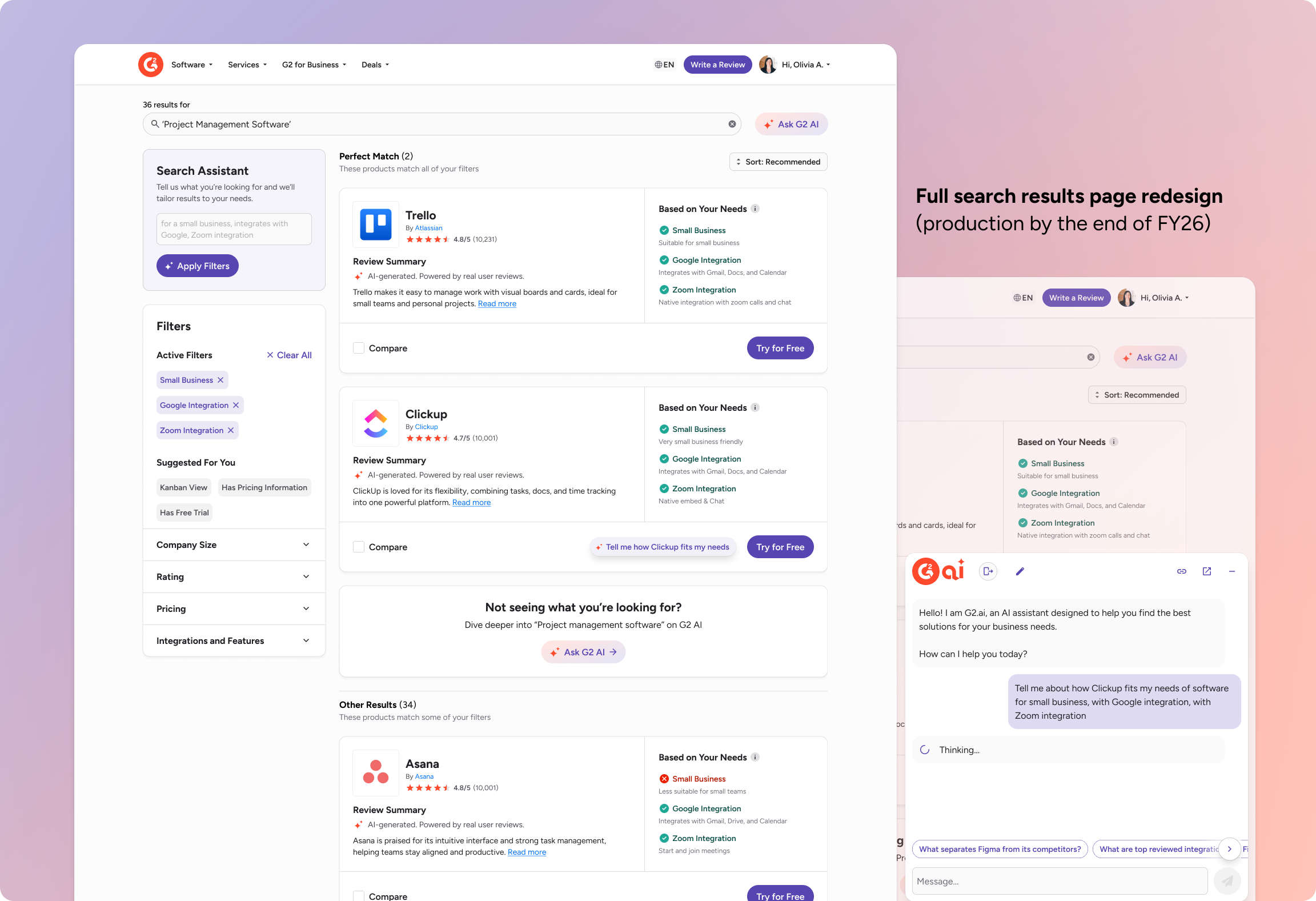 Guiding software buyers on G2 with a smarter AI-personalized search experience